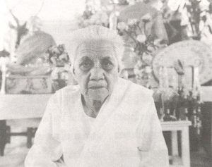 เวลานั่งกรรมฐานที่บ้าน ไม่มีใครกล้าเข้าไปดู ฉันจะอธิษฐานที่บ้านคราวละ ๓๐ ชั่วโมง พอครบกำหนดแล้ว จิตจะคลายออกเองก่อนเข้าจะบอกลูกหลานไว้ก่อน