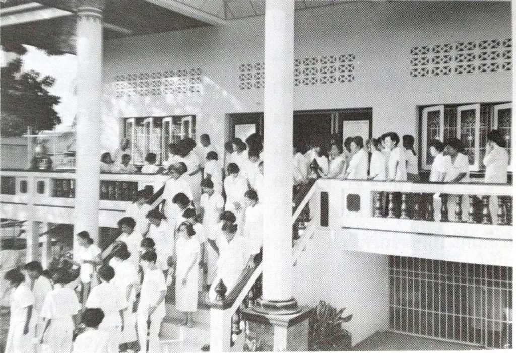 ที่หอประชุมวัดอัมพวัน เสียงไม่ออก ข้างนอกไม่เข้า ไม่ผิดกฎหมายบ้านเมือง มิฉะนั้นบ้านเมืองเขาจะปรับเอา ชาวบ้านเขาจะร้องทุกข์ วัดนี้หูหนวกเหลือเกิน