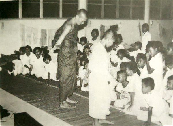 หลวงพ่อกำลังยกสะพานไฟเพื่อให้สวนเวฬุวันมีไฟฟ้าใช้ตลอดไป