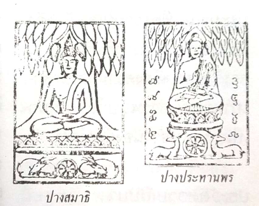 (ซ้าย) ปางสมาธิ, (ขวา) ปางประธานพร