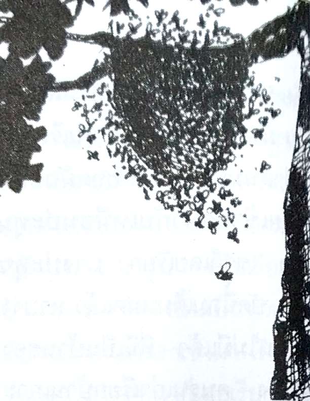 มีผึ้งมาเกาะรังใหญ่ที่บ้านลุงผม อยู่บ้านติดกัน วันนั้นเขาออกไปนอกบ้านเกือบหมด ลุงผมไปเลี้ยงควาย ป้าเขียวหาบของไปขายที่ตลาดบางขาม พี่สมบุญกำลังตั้งครรภ์ คนที่สองก็ไปขายด้วย เหลือแต่พี่เขยอยู่บ้าน ก็ชวนผมเอาไฟเผาผึ้ง เขาเป็นคนใช้เรา แต่เราก็เป็นเด็ก ไม่รู้ว่าเป็นบาปแต่ประการใด