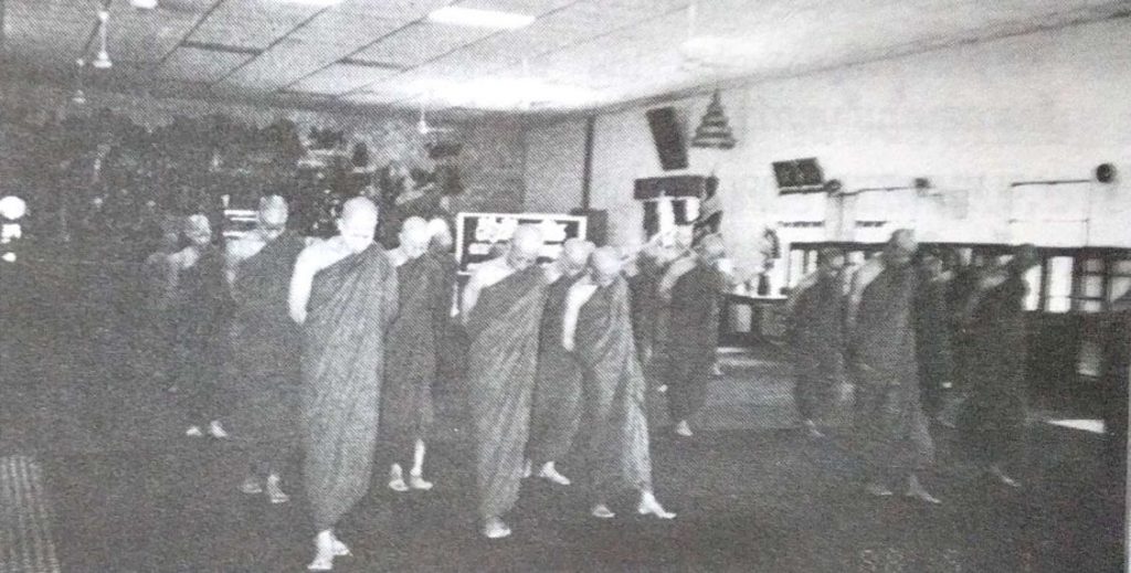 เอาไว้ข้างหลัง มือขวาจับมือซ้าย เดินไปมันจะปวดหัวไหล่ ปวดก็ให้กำหนด มันจะกดกระเบนเหน็บ จะไม่เป็นโรคไต ไม่ใช่เดิน ๑๐ นาทีนะเดินเป็นชั่วโมงซิแล้วถึงจะรู้ หลังจะไม่งอด้วย มีประโยชน์ด้วย บริหารลมหายใจได้ดีด้วย ขอฝากไว้ ผู้ทำกรรมฐานโปรดทำตามนี้