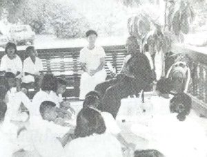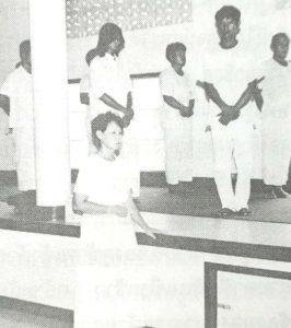 พิธีเริ่มด้วยการสวดมนต์ไหว้พระรับกรรมฐาน ท่านเจ้าคุณหลวงพ่อท่านเจ้าอาวาสวัดอัมพวัน มาเป็นองค์ประธานเปิดการอบรม เสร็จแล้วเริ่มปฏิบัติเดินจงกรม นั่งสมาธิปฏิบัติกันที่หอประชุมภาวนากรศรีทิพา ข้าพเจ้าเริ่มปวดศีรษะ แล้วก็ปวดมากขึ้นเรื่อย ๆ พอถึง ๕ ทุ่มก็อาเจียน ต้องทานยาแก้แพ้ให้ง่วงหลับไป พอตี ๔ ตื่นขึ้นมาทำภารกิจส่วนตัวเสร็จแล้วก็ไปที่หอประชุมปฏิบัติกันก่อน เวลา ๖.๐๐ น. คุณแม่สิริ ท่านก็มานำสวดมนต์ ไว้พระ ฟังธรรม ๗.๐๐ น. ไปรับประทานอาหารเช้า ๘.๐๐ น. เข้าปฏิบัติต่อ ในวันนี้ตรงกับวันที่ ๒ เมษายน ๒๕๓๓ ซึ่งเป็นวันคล้ายวันพระราชสมภพของสมเด็จพระเทพรัตนราชสุดาฯ สยามบรมราชกุมารี คุณแม่สิริ ท่านนำลูกโยคีถวายราชสดุดี หลังจากนี้ก็เดินจงกรม นั่งสมาธิ