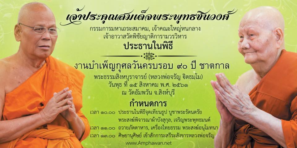ในการนี้จึงขอเรียนเชิญศิษยานุศิษย์ทุกๆ ท่านร่วมจิตร่วมใจ ระลึกถึงพระเดชพระคุณหลวงพ่อ ร่วมงานในวันคล้ายวันเกิด ๑๕ สิงหาคม โดยจัดพิธีทำบุญเหมือนเช่นที่พระเดชพระคุณหลวงพ่อยังคงอยู่ ได้อาราธนานิมนต์พระเถรานุเถระ มาเจริญพุทธมนต์ โดยปีนี้จะจัดงานที่ ศาลากรศรีทิพา (ศาลา ร.๕)